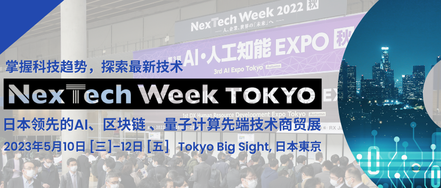 2023/04/27加入您的商務(wù)行程—邀請(qǐng)參訪日本先端技術(shù)盛宴?。?月10-12日@東京)文末掃碼申請(qǐng)免費(fèi)觀眾入場(chǎng)券▋國(guó)內(nèi)外300家展商云集 —掌握科技新趨勢(shì)NexTech Week Tokyo是日本領(lǐng)先的AI人工智能、區(qū)塊鏈、量子計(jì)算先端技術(shù)商貿(mào)展。今春的展會(huì)預(yù)計(jì)匯集300家展商共襄盛舉。其中包含日本知名老牌企業(yè).... -
